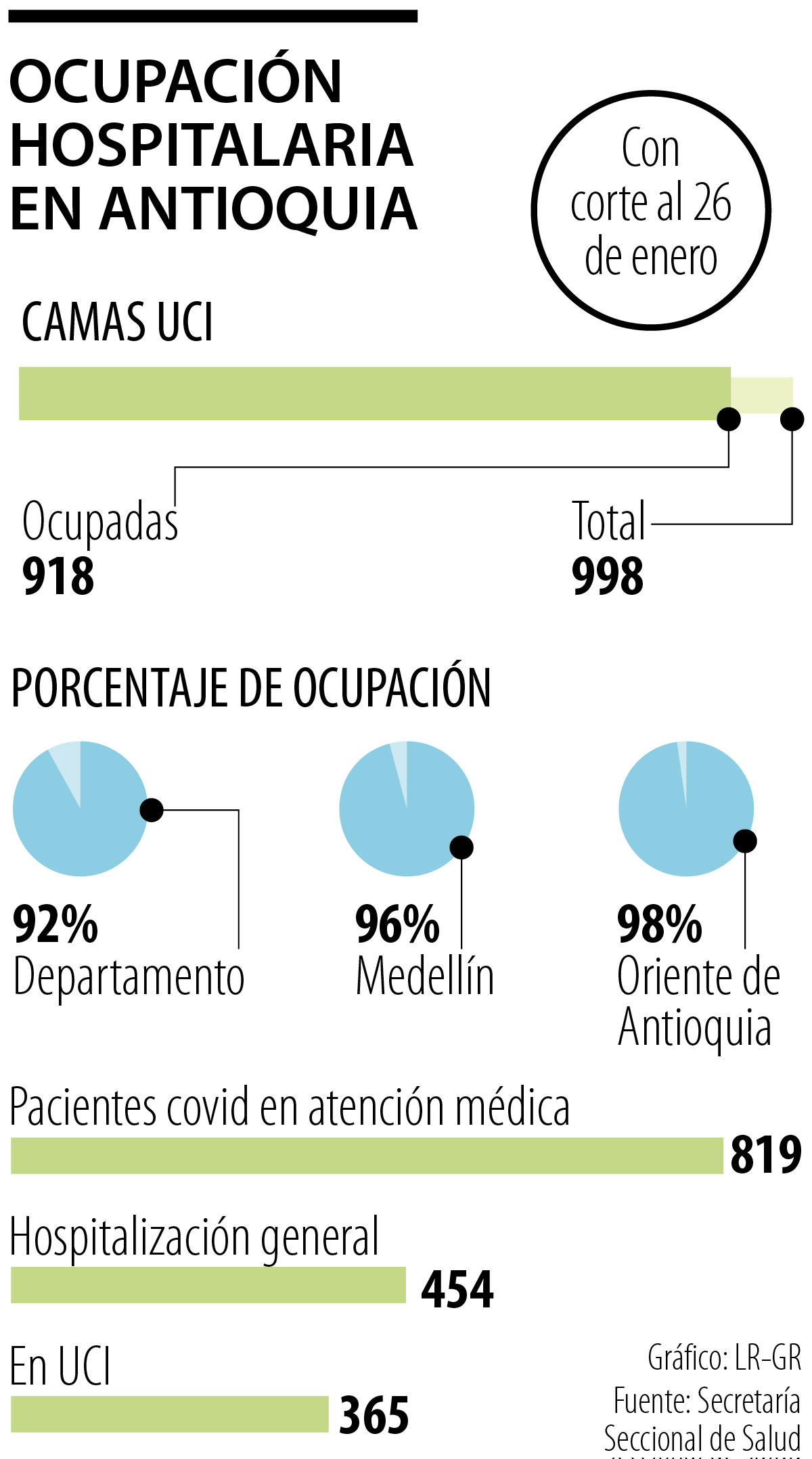 Los municipios que registran mayor ocupación de Unidades de Cuidados Intensivos son Medellín, Rionegro, Bello e Itagüí