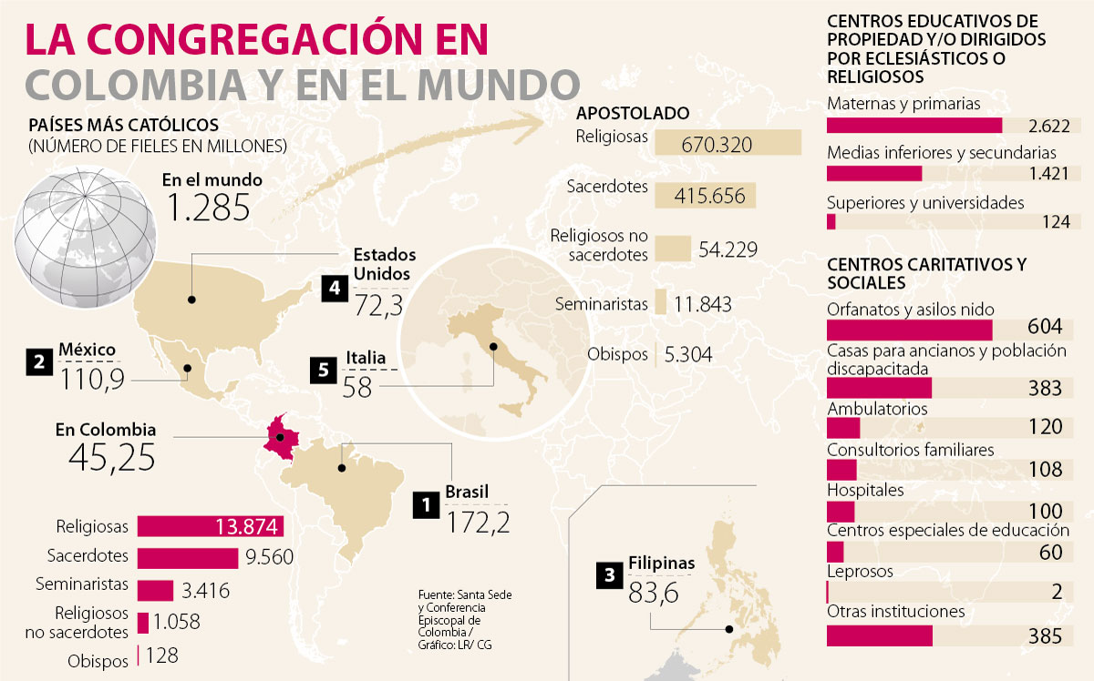 Dos milenios de historia, 266 Papas, una ciudad Estado con un territorio de 44 hectáreas y 1.285 millones de fieles en el mundo, son algunas de las cifras de la Iglesia Católica, una de las organizaciones más globalizadas del mundo y cuya presencia abarca todos los continentes.