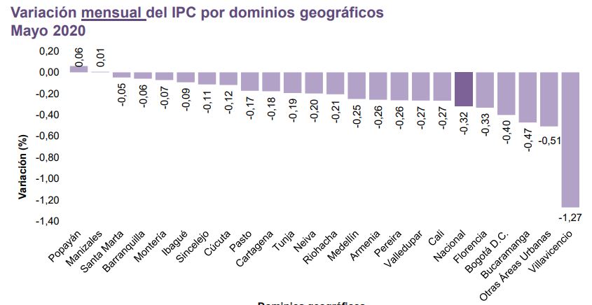 Villavicencio tuvo la mayor contracción de su inflación en el quinto mes del año, tras cerrar en -1,27. A esta le siguió Bucaramanga, con -0,47% y Bogotá, con -0,40%.