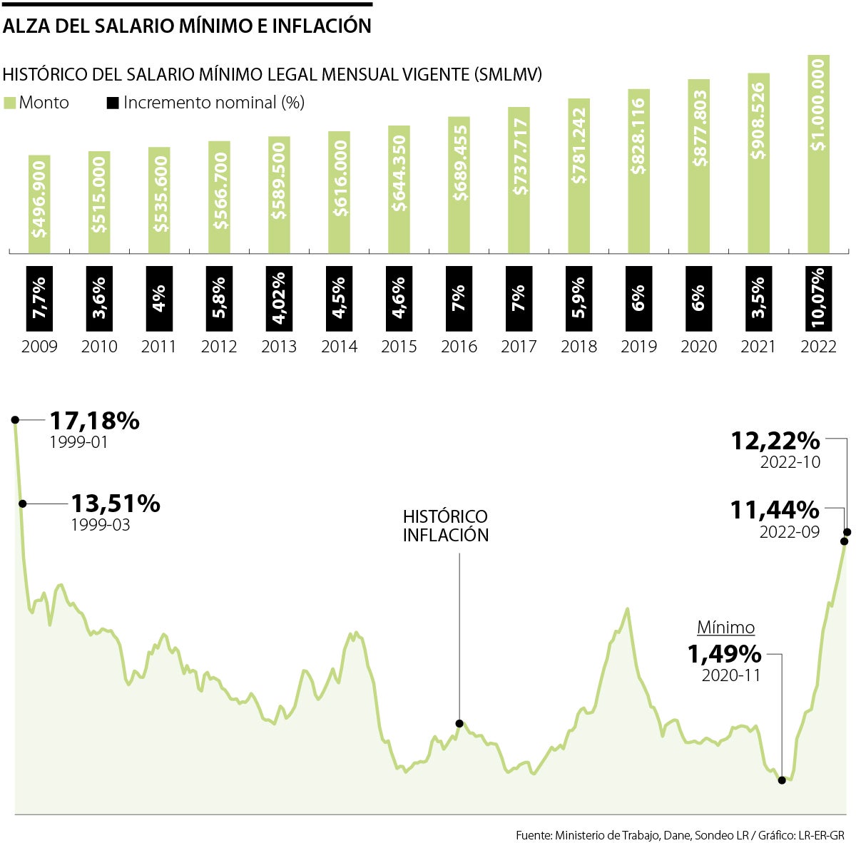 De otro lado, para expertos como Julio Romero, economista jefe de Corficolombiana, contrario a lo que espera Pérez, por la cercanía del Gobierno con los sindicatos y las propuestas de campaña, el salario mínimo no debe aumentar muy por encima de la inflación de 2022.