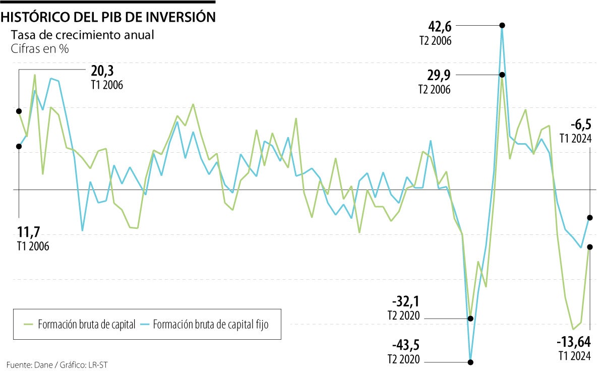 Uno de los principales obstáculos de la economía continúa siendo la falta de inversión. Según los datos registrados por el Dane, este aspecto, medido como la formación bruta de capital, cayó 13,4% en el primer trimestre del año y se convirtió en uno de los que más retrocedió cuando se analiza el Producto Interno Bruto por el lado del gasto.