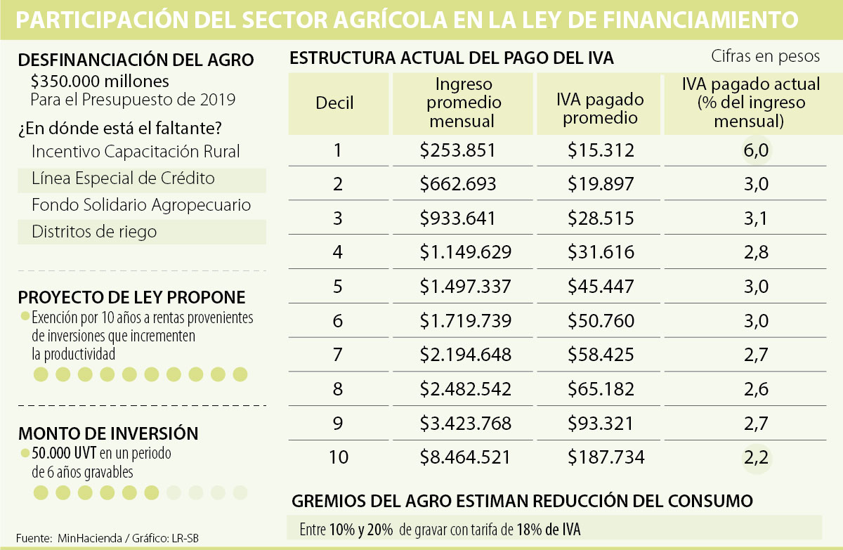 Aunque gran parte de la discusión en torno a la propuesta de reforma tributaria que radicó el actual Gobierno, bajo la figura de una ley de financiamiento está asociada al aumento del IVA, al sector agropecuario le preocupa otro artículo, enfocado en mayor atracción de inversión y exenciones del sector.