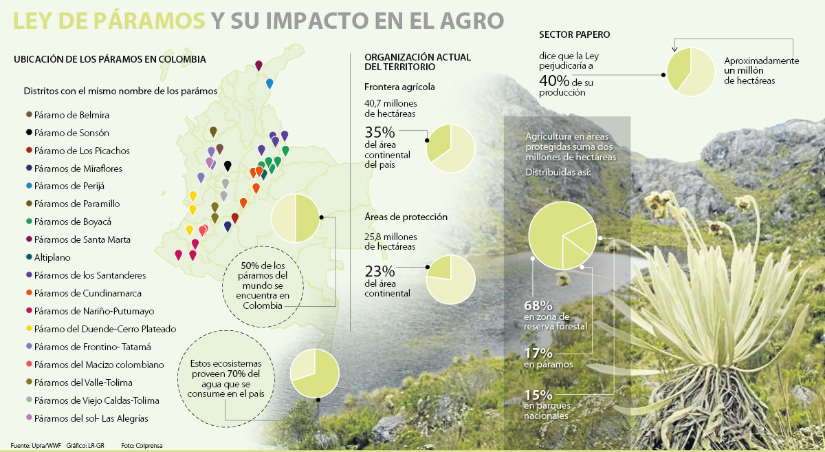 La Ley de Páramos, que fue aprobada recientemente en el Congreso, planteó la necesidad de proteger estos ecosistemas que ocupan 1,69% del territorio nacional, midiendo los efectos de dos sectores en particular, la minería y el agro.