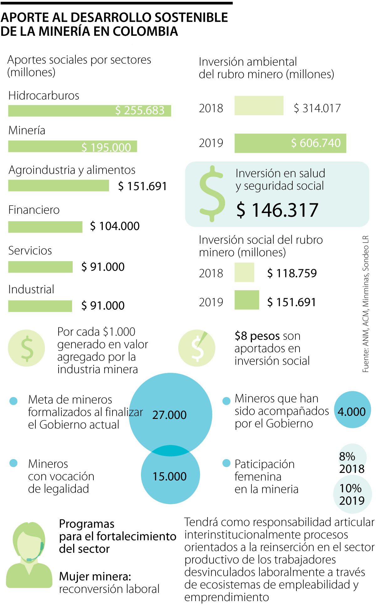 La formalización de 27.000 mineros, el programa ´mujer minera’ y la reconversión laboral hacen parte de las estrategias del rubro