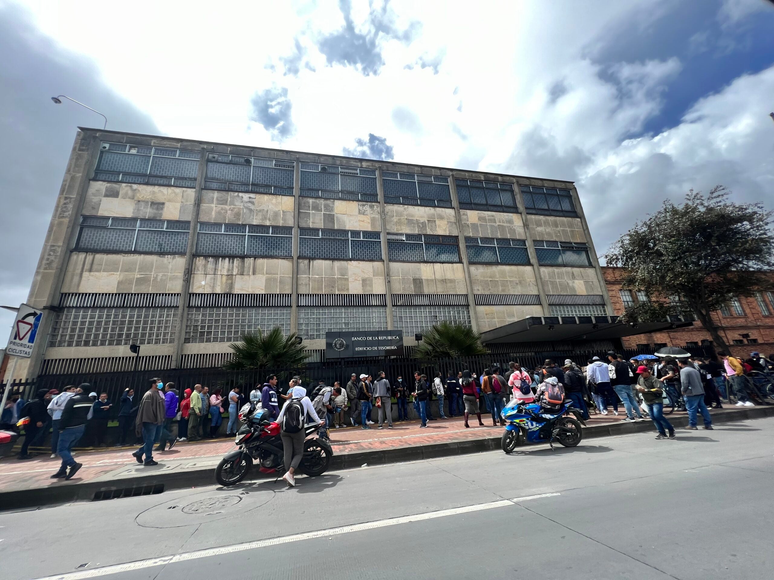 Solo en Bogotá, únicamente está habilitada la sede de Tesorería del Emisor en la Zona Industrial, y ayer miércoles 11 de enero, llegaron más de 2.000 personas, a tal punto que la fila era casi dos veces la manzana de la sede del Banco.