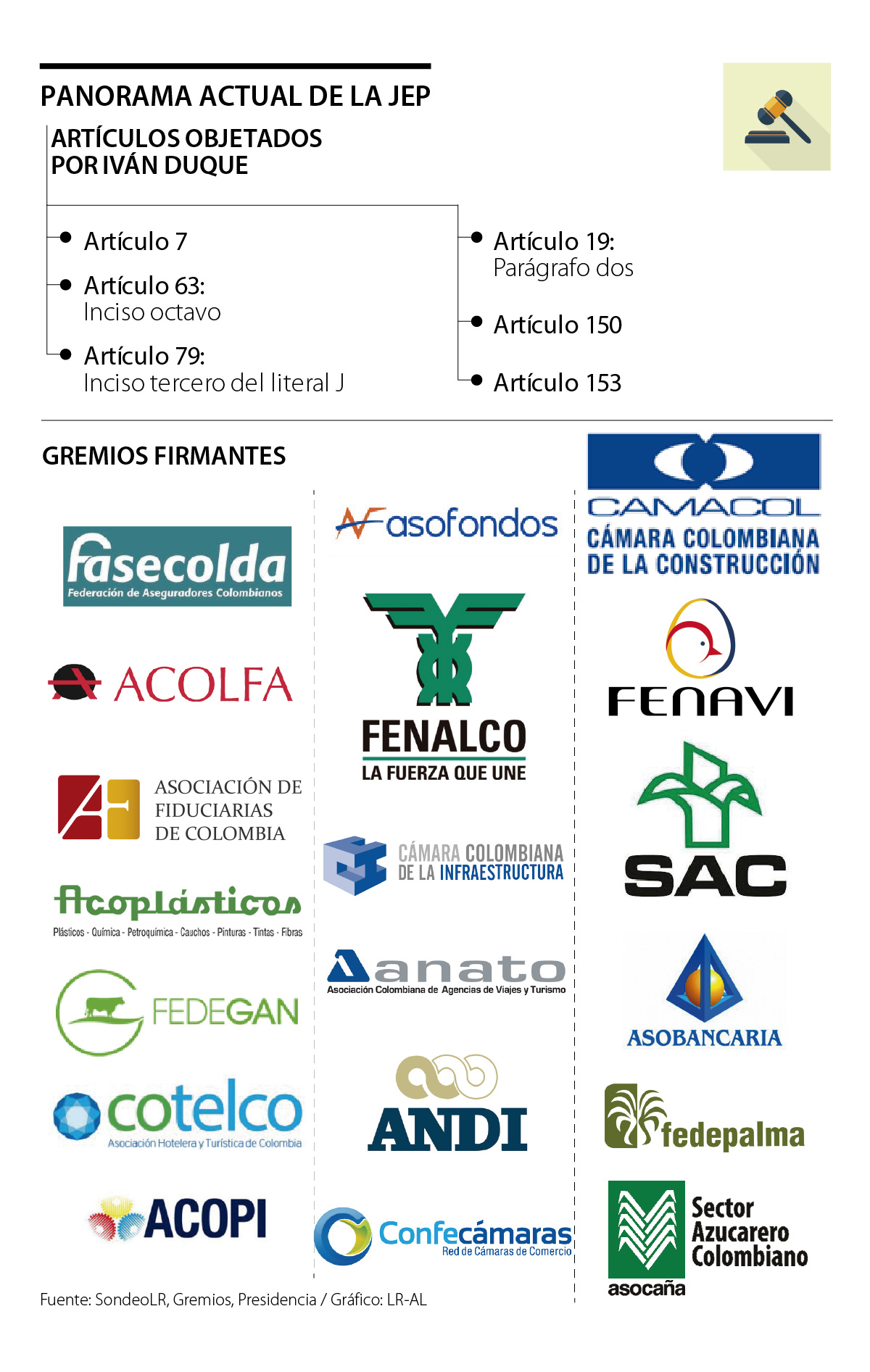 Los líderes de varios de los gremios más importantes del país publicaron una carta en la cual se manifiesta el apoyo a las seis objeciones presentadas por Iván Duque a la Ley estatutaria de la JEP.