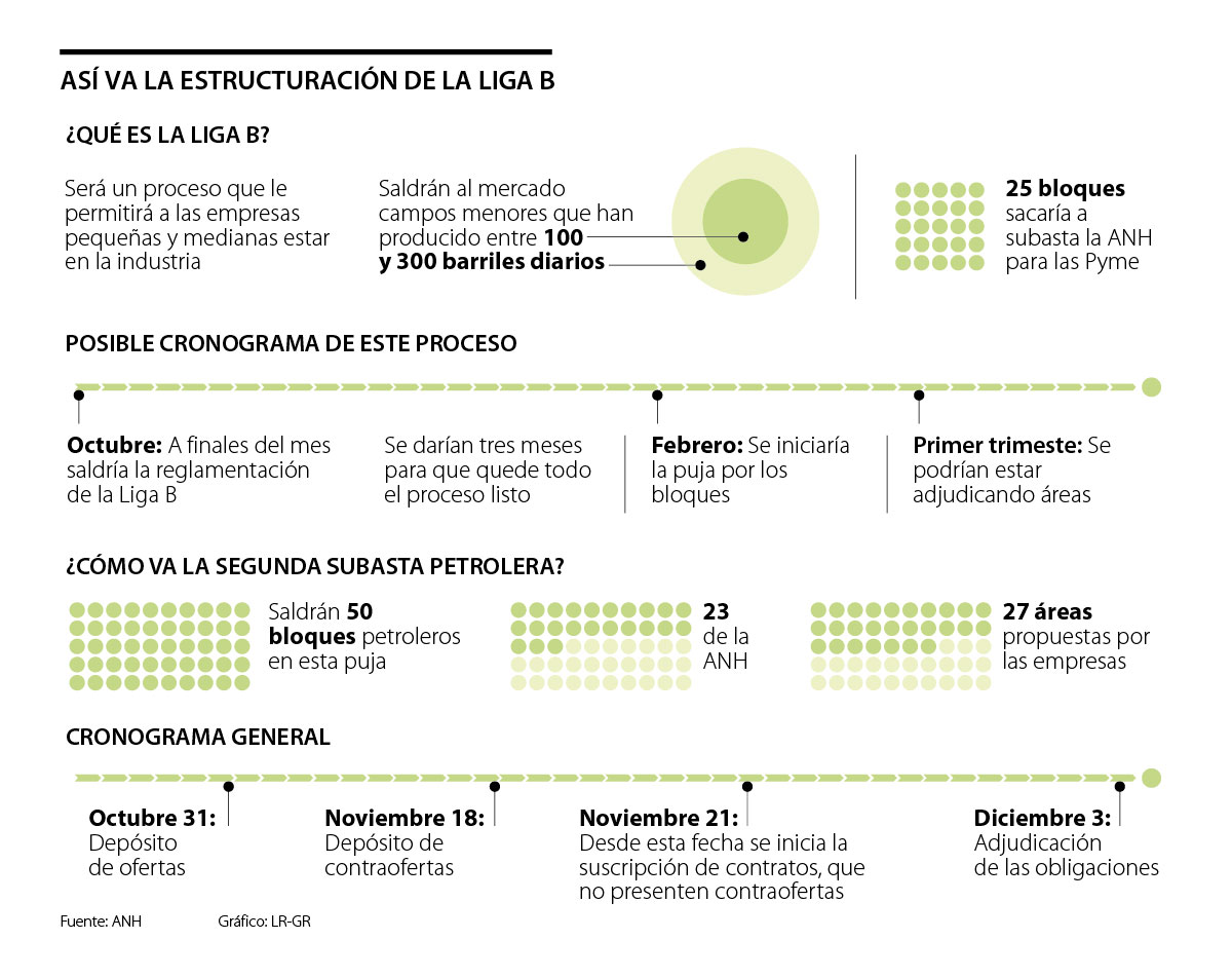 La Agencia Nacional de Hidrocarburos (ANH) continúa con su plan de reactivación y democratización del sector. A la par que viene trabajando en la segunda subasta del Proceso Permanente de Asignación de Áreas (Ppaa), en la que prevén sacar 50 áreas continentales y costa afuera al mercado, sigue avanzando en la reglamentación de la Liga B, una iniciativa en la que las pequeñas y medianas empresas podrán pujar por al menos 25 áreas petroleras.