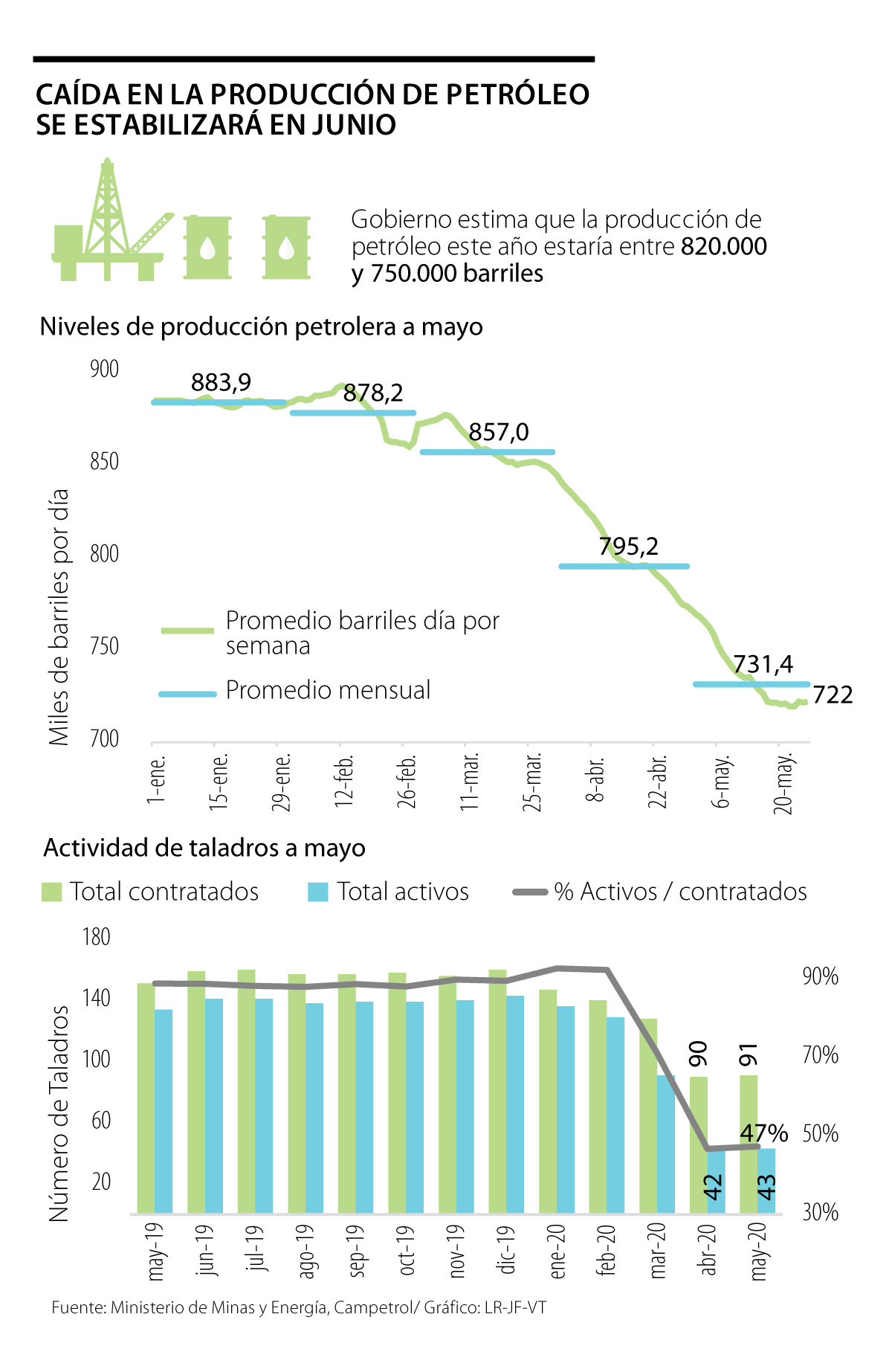 La recuperación que se prevé este mes se daría luego de que la industria presentara indicadores mínimos en materia de producción, exploración y sísmica. De hecho, en el más reciente informe de Campetrol se advierte que en mayo se llegó a tan solo 43 taladros activos, lo que significó una caída anual de 68% frente al quinto mes de 2019.