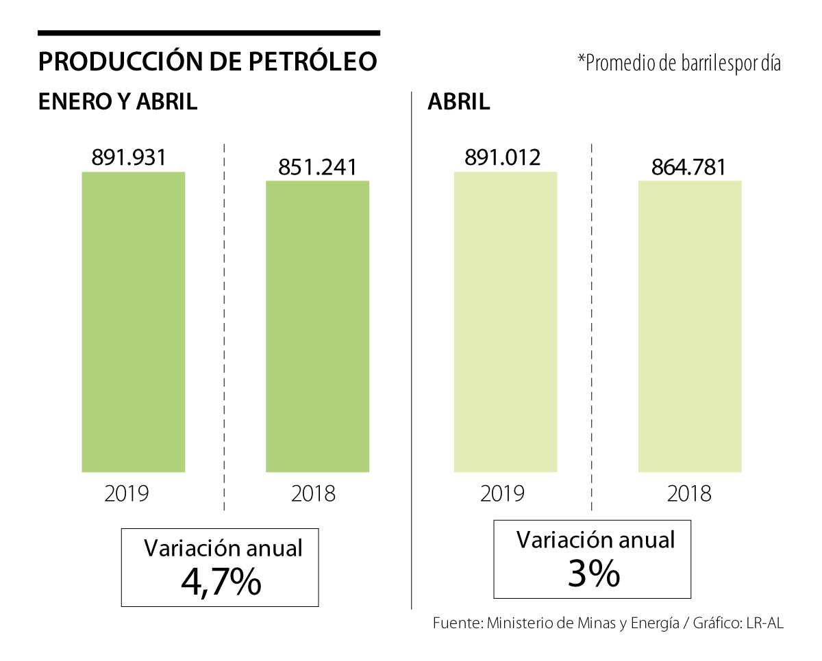 Según los reportes del Ministerio de Minas y Energía, entre enero y abril, la producción de petróleo en Colombia fue de 891.931 barriles en promedio por día. Con esta cifra se evidenció que el bombeo subió 4,7% en lo corrido del año, si se tiene en cuenta que para los primeros cuatro meses de 2018, la cifra estaba en 851.241 barriles.