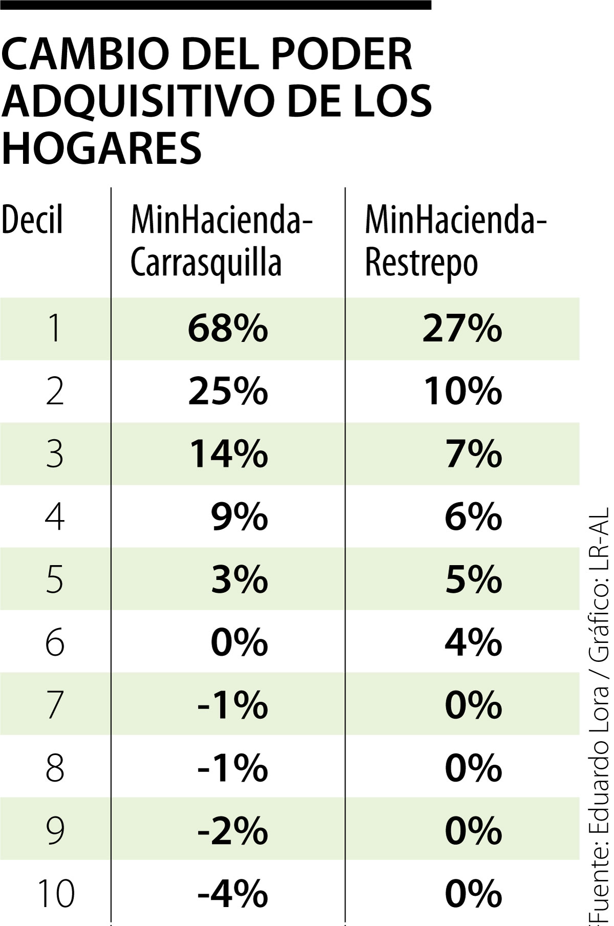 Los economistas Eduardo Lora y Miguel Benítez compararon las dos propuestas tributarias que se hicieron este año y concluyeron que con el articulado de Alberto Carrasquilla, el cambio en el poder adquisitivo hubiera sido mayor para las personas que viven en la pobreza, que con la propuesta del ministro José Manuel Restrepo.