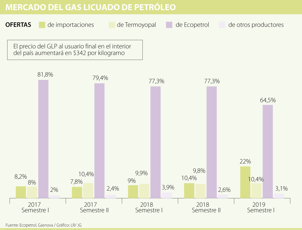 Alejandro Martínez Villegas, presidente de Gasnova, estima que las importaciones de este combustible pasarán de representar 10,4% de la demanda a 22% de esta. “El GLP importado es más costoso pues debe ser transportado del Golfo de México a la costa colombiana y luego en carro tanques al centro del país”, mencionó.