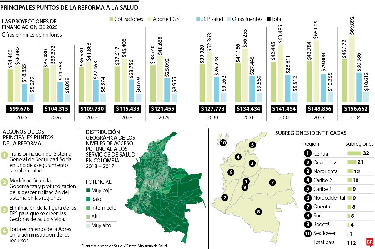 El Ministerio de Hacienda proyectó gastos de $99,6 billones para 2025 y $156,6 billones para 2034. “Este proyecto no soluciona el problema financiero. No se habla de presupuestos máximos ni de los problemas que ocasionaron los inconvenientes. No hay claridad en cómo se va a usar el dinero. El gasto en salud a futuro es difícil de contener; esta será la principal discusión”, afirmó Paul Rodríguez, director de la escuela doctoral en economía de la Universidad del Rosario.