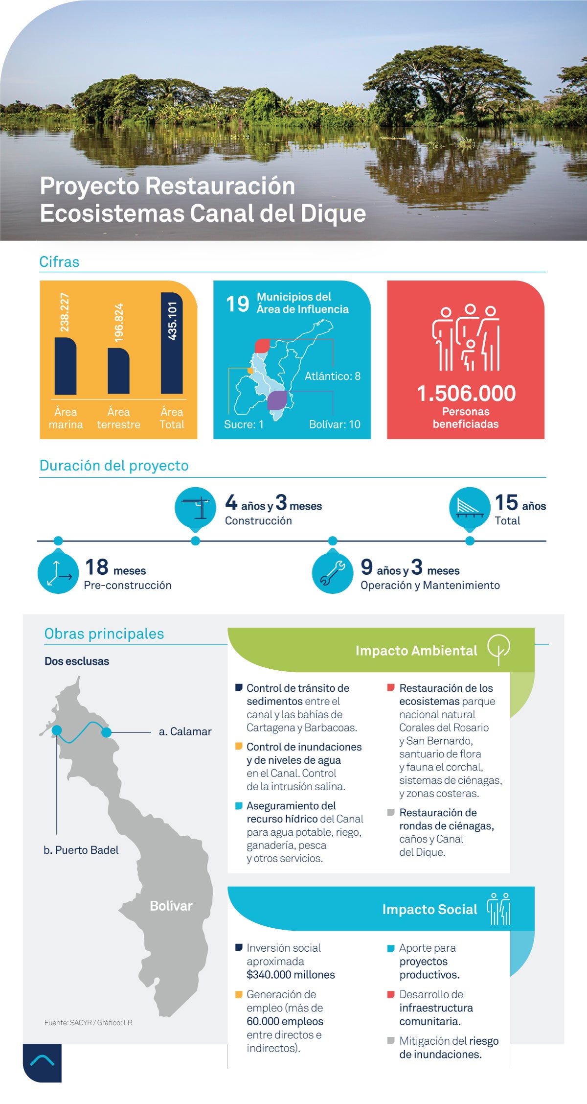 El presupuesto total del proyecto asciende a $3,2 billones y pretende beneficiar a más de 1,5 millones de personas que viven a lo largo de 19 municipios de Atlántico, Bolívar y Sucre, que componen el área de influencia. El impacto positivo en materia ambiental y social beneficiará a estas comunidades y al entorno circundante, ya que además de la restauración de los ecosistemas degradados, se proyecta una mejora en la conectividad fluvial de la zona que traerá consigo desarrollo económico para toda la región.