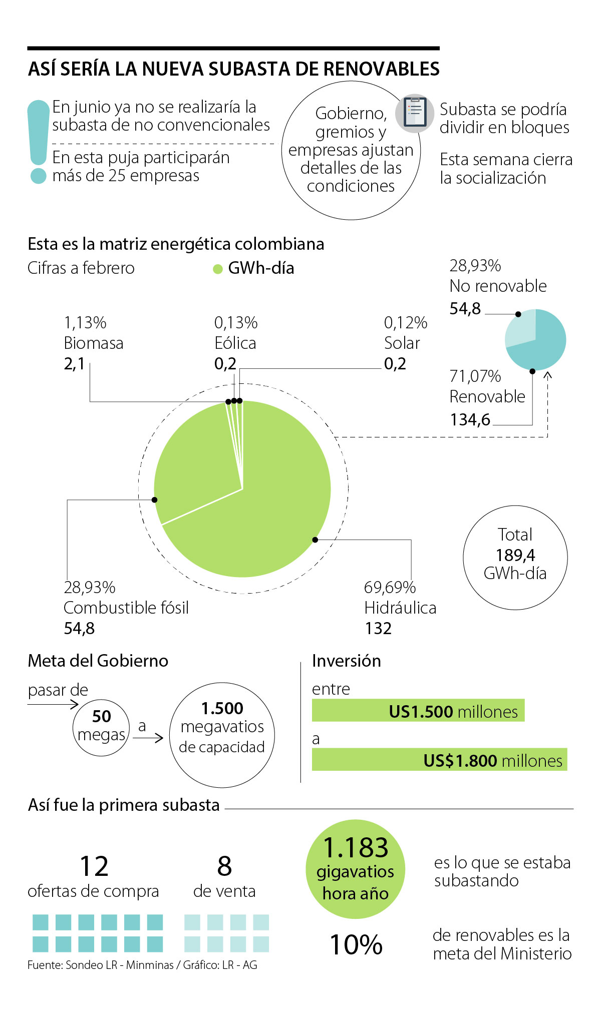 Pese a que LR se comunicó con el Ministerio de Minas y Energía para obtener información sobre cómo va el proceso, no se logró una respuesta por dicha cartera. No obstante, desde los gremios y empresas se cree que en esta nueva puja superará el tope al que llegó la anterior subasta, así como que se definirán las nuevas reglas de juego para compradores y vendedores.