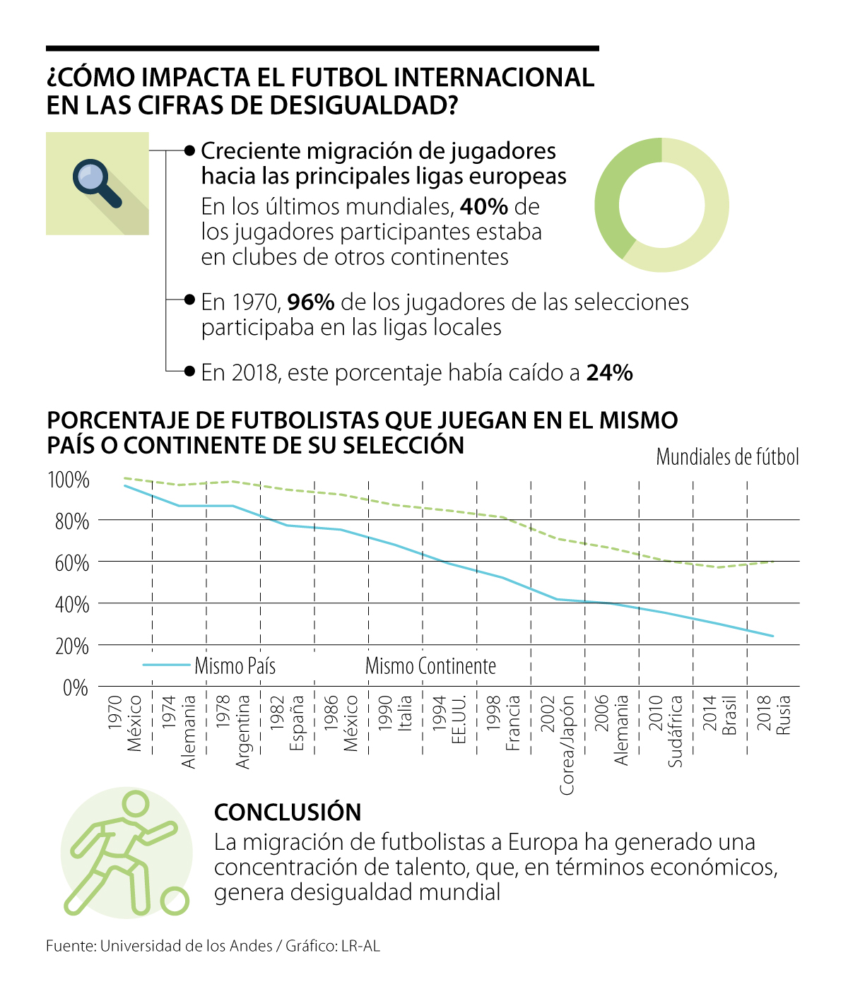 En conclusión, señala el documento, “la globalización ha traído consigo una concentración del talento, que ha ocasionado, a su vez, una doble desigualdad: una desigualdad entre ligas”, y una desigualdad al interior de cada uno de los países, en donde hay solo unos cuantos que dominan el mercado, la televisión, la boletería y los buenos jugadores.