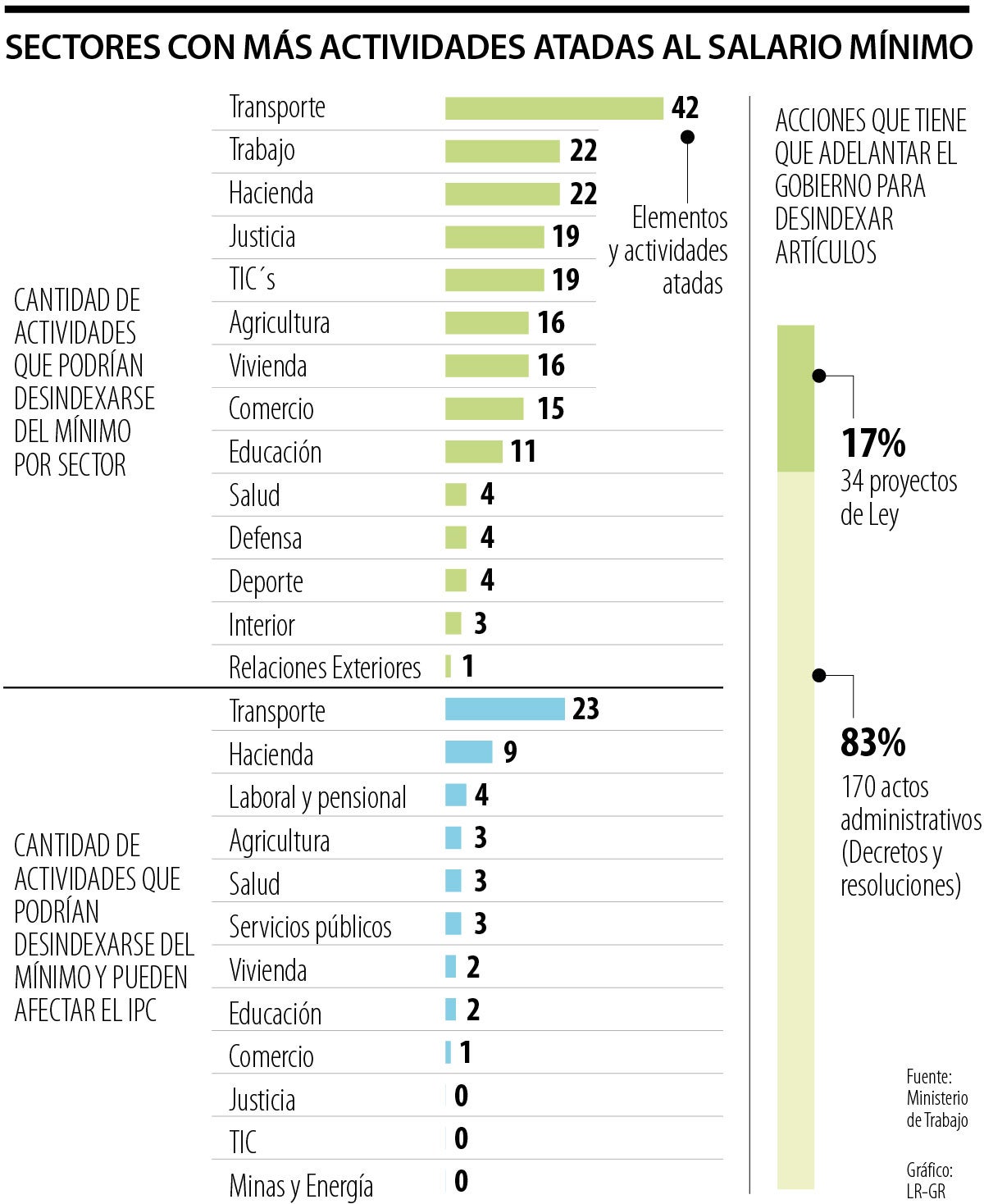 En otros sectores, también se podrían desligar del salario mínimo importantes actividades como los servicios de protección social, los seguros médicos, de accidente y medicina prepagada tanto para pensionados como para los trabajadores. También, las cuotas moderadoras a las EPS, el servicio de recogida de la basura y las multas de tránsito.