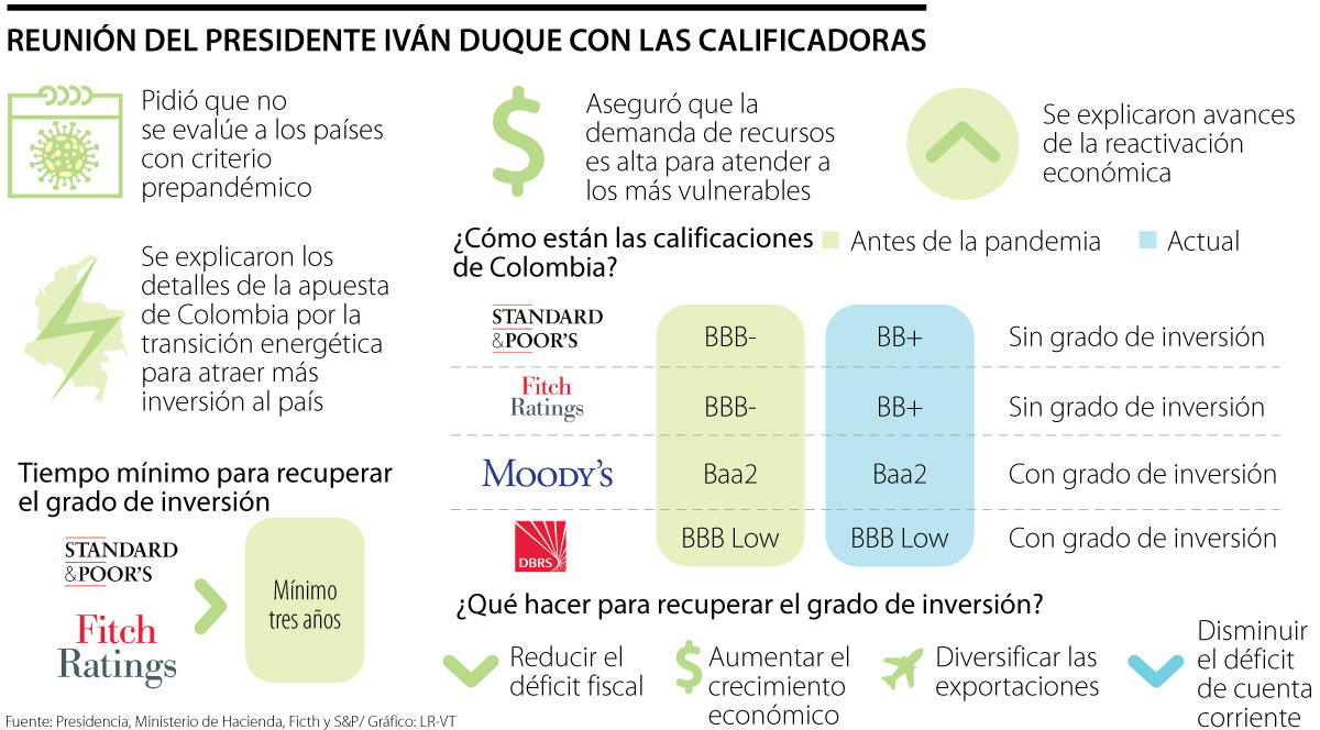 Pese a este espaldarazo a la reforma y a la economía del país, Duque también fue enfático en insistir que no se pueden ajustar calificaciones crediticias con criterios establecidos desde antes de la pandemia.