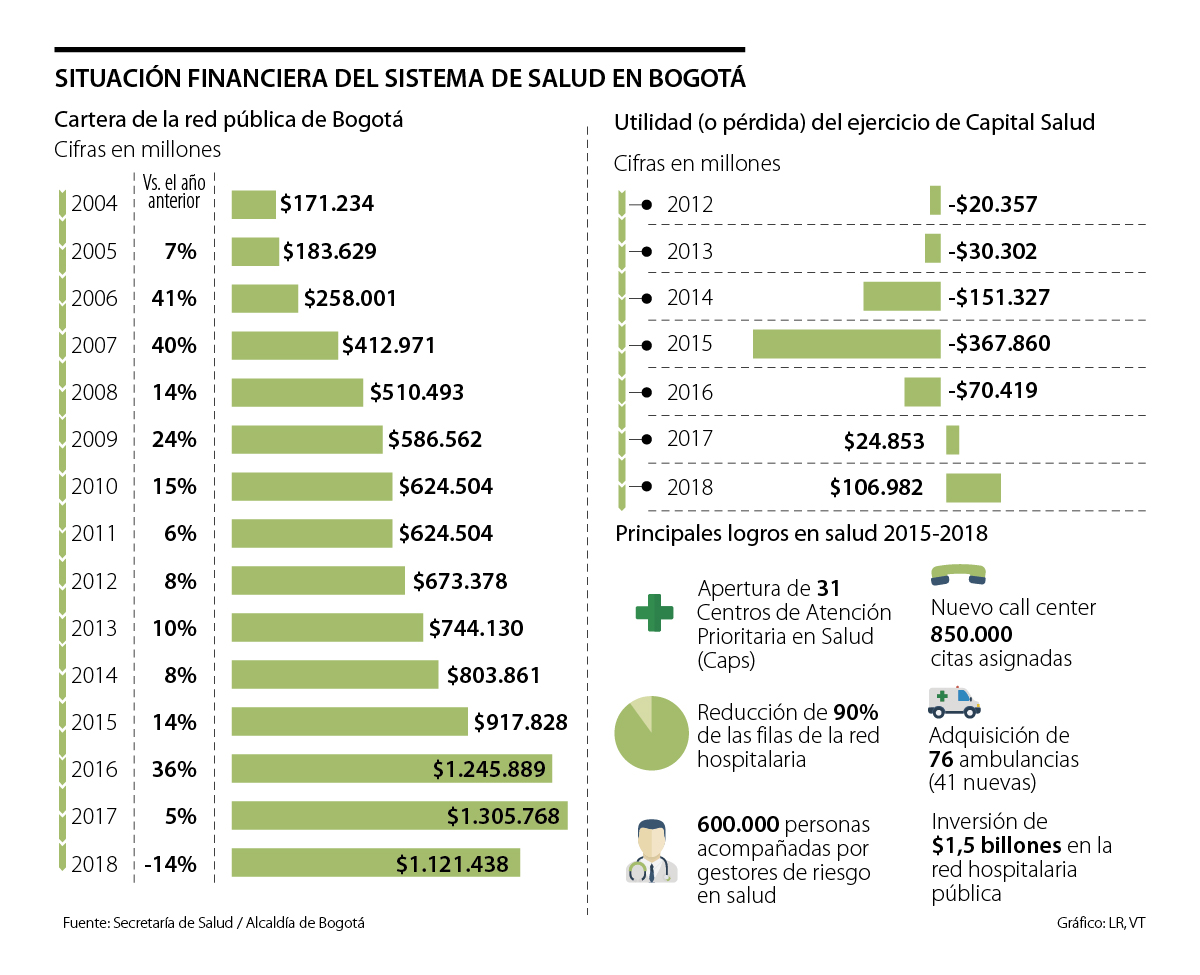 Desde la Secretaría de Salud se destaca que la EPS distrital Capital Salud ha reportado utilidades por $24.000 millones, en 2017, y de $107.000 millones, en 2018