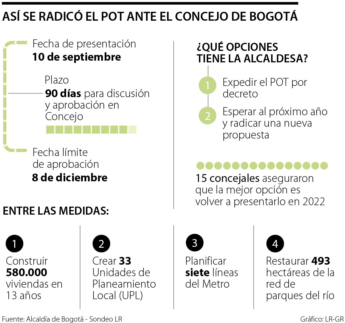 Esto quiere decir que a la alcaldesa de Bogotá, Claudia López, no le quedan muchas opciones tras el cumplimiento de este plazo para pasar el POT.