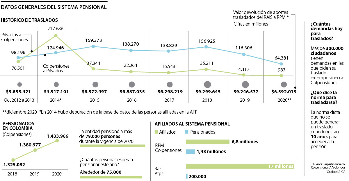 Las nuevas reglas para darle luz verde a los traslados llega en un momento en el que más de 300.000 ciudadanos tienen demandas en las que piden su traslado extemporáneo a Colpensiones y en el que la gran mayoría de peticiones excedió el plazo máximo para cambiar, pues la norma dicta que no se puede generar un traslado cuando restan 10 años para acceder a la pensión.