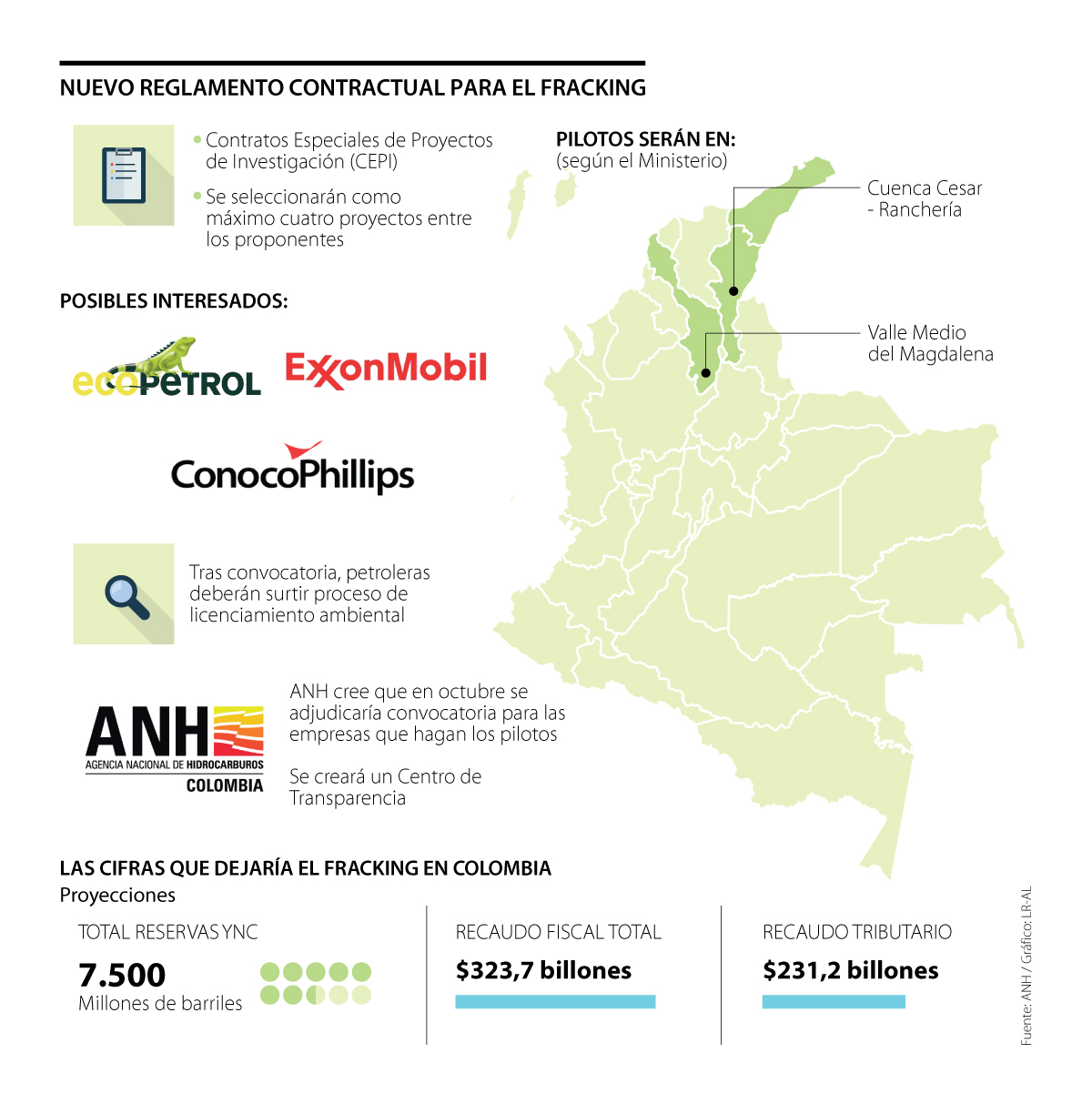 En aproximadamente dos semanas la Agencia Nacional de Hidrocarburos (ANH) abrirá la fase de habilitación para las empresas interesadas en los pilotos de fracking. Será un nuevo proceso en el que la entidad analizará varias propuestas, con el objetivo de definir quiénes serán los contratistas que desarrollarán todo el proceso de investigación en dos cuencas clave de estos yacimientos: Cesar - Ranchería y Valle Medio del Magdalena.
