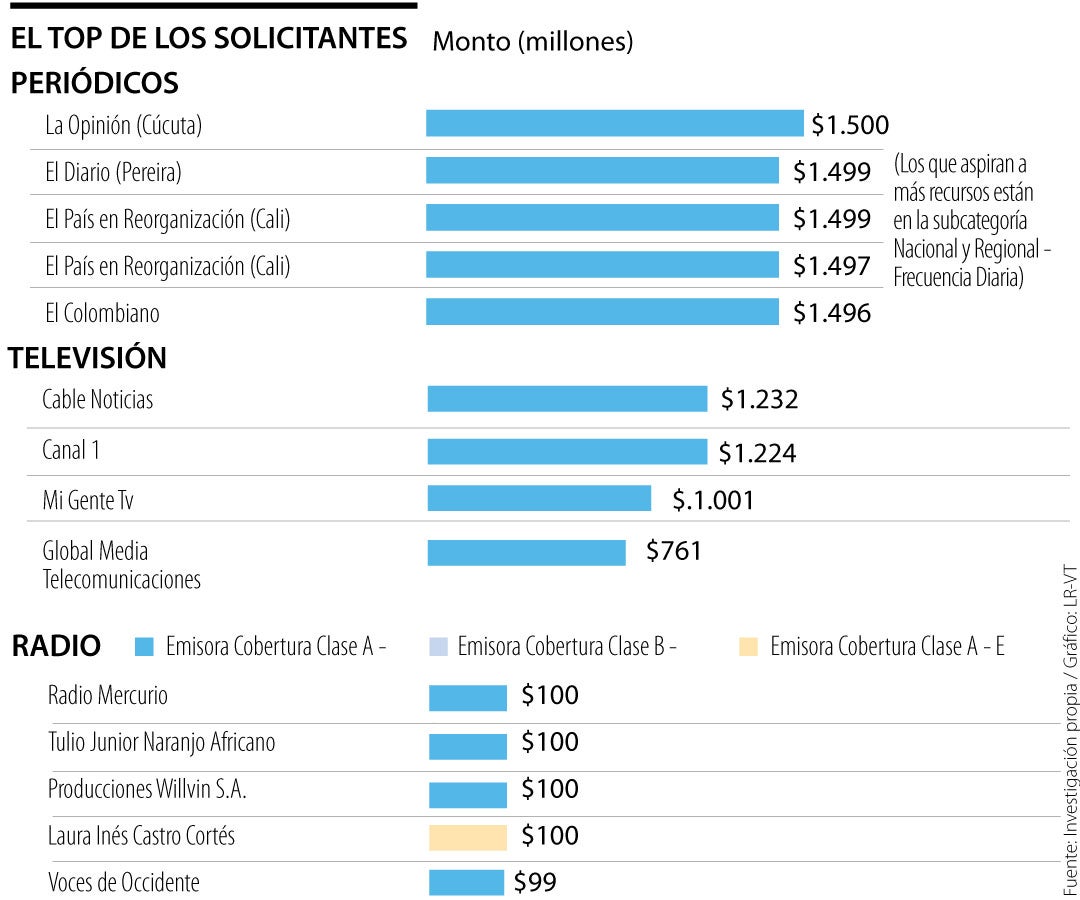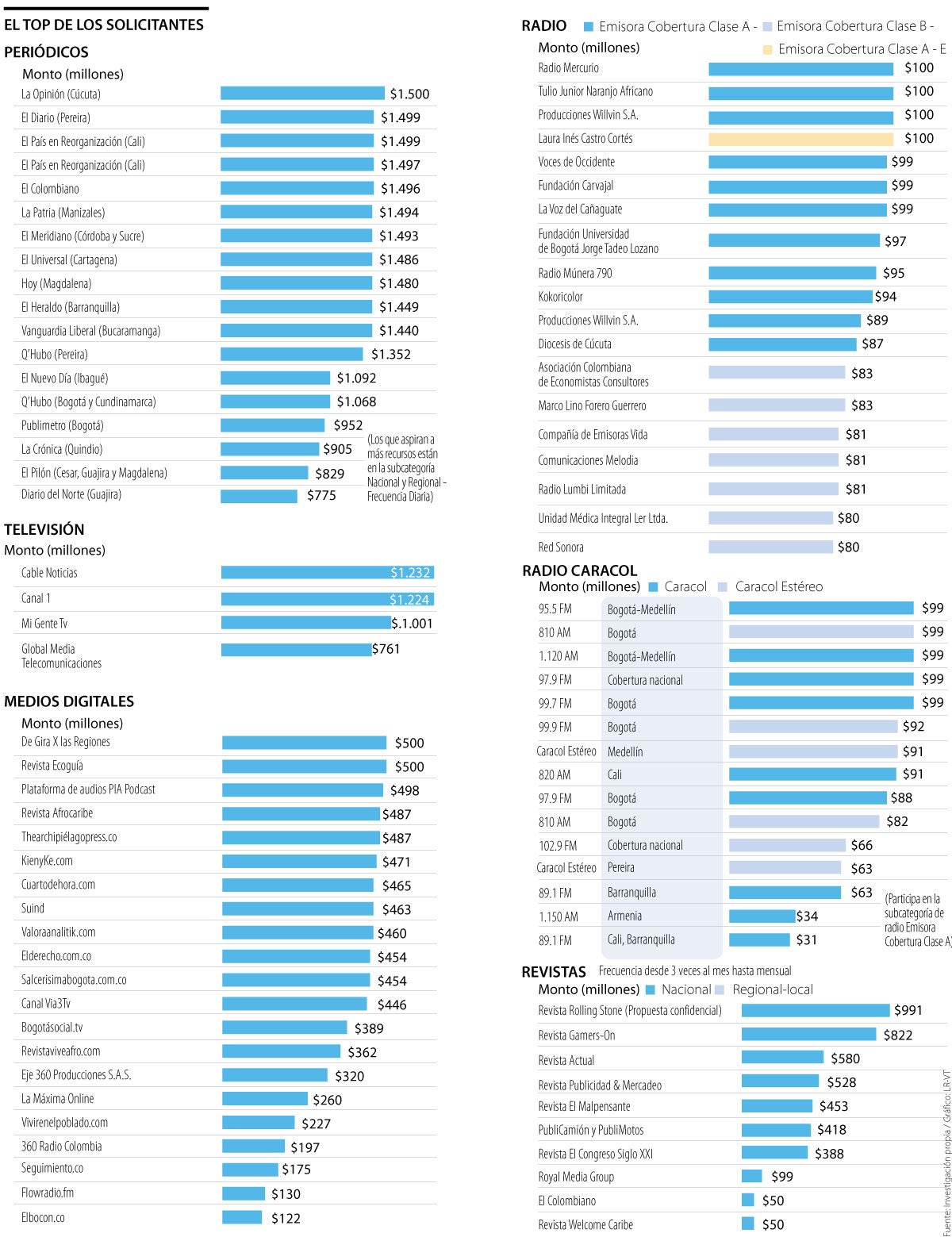 La prensa también había decidido participar y periódicos como El Heraldo, La Opinión, El Colombiano, El País, La Crónica y Publimetro habían solicitado un monto entre $700 millones y $1.500 millones.