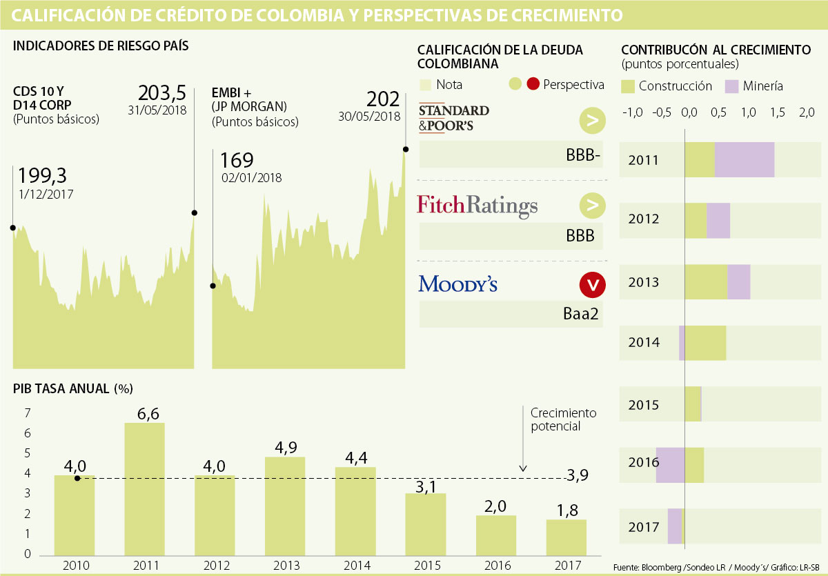 En febrero de este año, Moody’s mantuvo la calificación crediticia de Colombia en Baa2, aunque bajó la perspectiva de estable a negativa. Si bien la calificadora indicó ayer, durante la primera conferencia anual de la entidad en el país, que no modificará la nota soberana hasta 2019, sí manifestó que existen tres elementos sobre los cuales estará atenta.