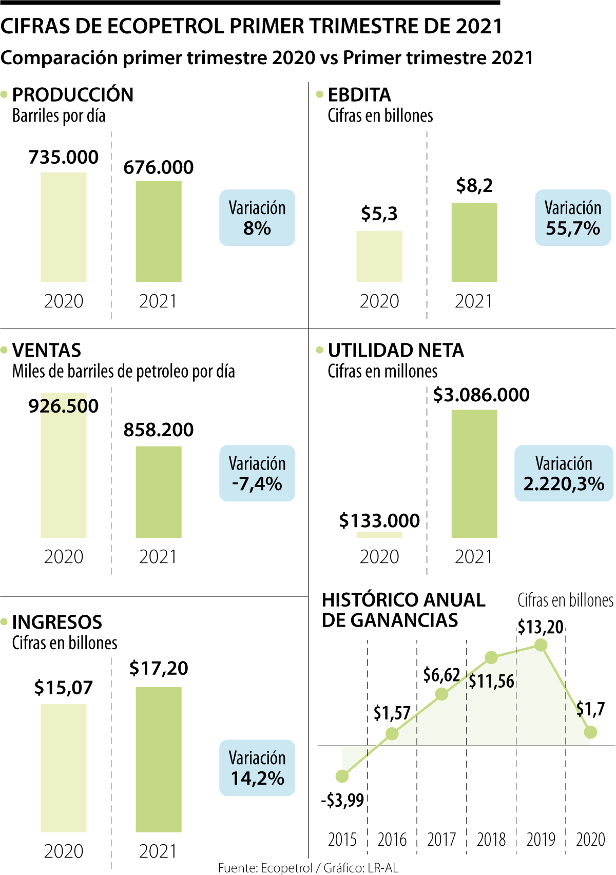 El Ebitda de la compañía alcanzó los $8,2 billones, mostrando un aumento de 55% respecto a 2020. La petrolera también afirmó que durante el primer trimestre fueron aprobados recursos por un valor de $60.000 millones para la atención de la pandemia.