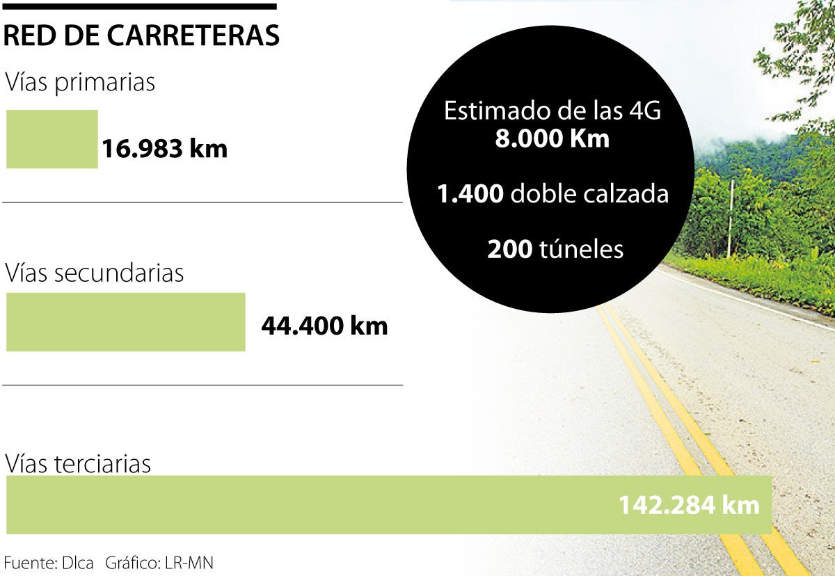 Las llamadas 4G, carreteras de Cuarta Generación, entregadas en concesión, tienen unos 8.000 kilómetros, más de 1.400 de doble calzadas, y conectan con casi 200 túneles, entre los que se cuentan los más largos del continente.