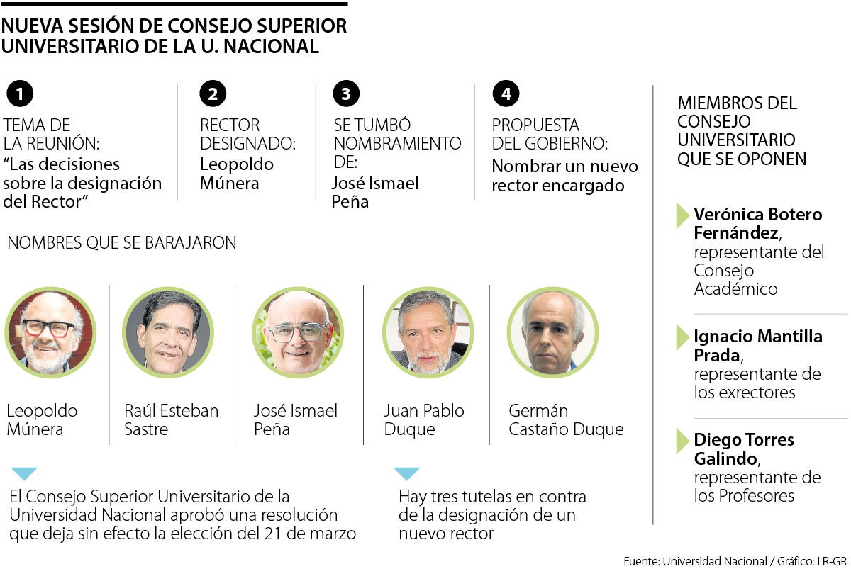 A pesar del fallo de tutela a favor de José Ismael Peña, el viceministro de Educación, Alejandro Álvarez Gallego, propuso designar un rector encargado de la universidad con base en el listado de los cinco finalistas que llegaron a la sesión del 21 de marzo, entre los que estaban el mismo Peña y el designado Leopoldo Múnera.