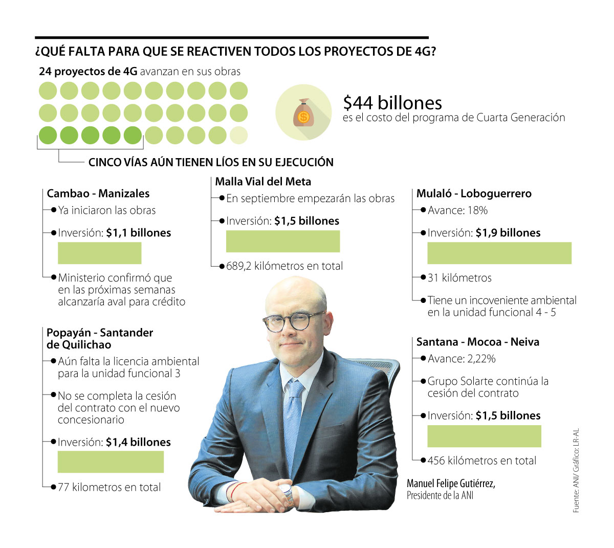 El presidente de la ANI, Manuel Felipe Gutiérrez, hizo un balance sobre cinco de los proyectos de 4G que todavía no empiezan o que tienen atrasos significativos