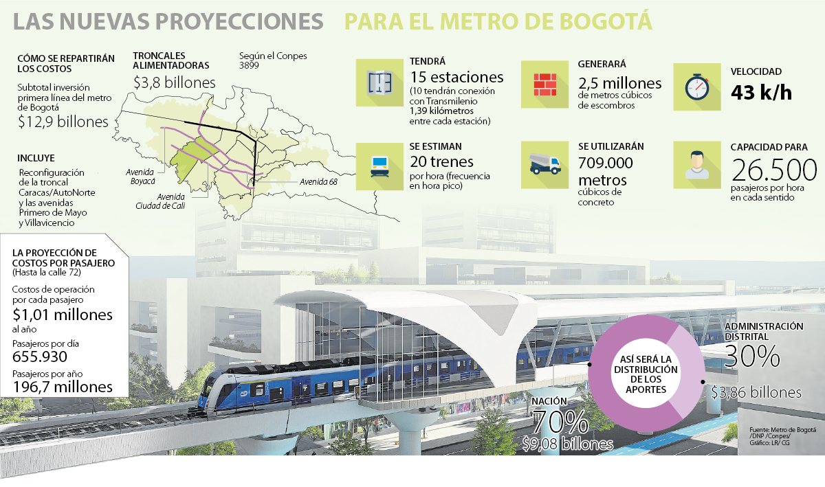 Sin embargo, dos puntos se fijaron en el cronograma: por tarde, la licitación estará abierta en los primeros meses de 2018 y la construcción comenzará en 2019; con lo cual, según indicó Luis Fernando Mejía, director del Departamento Nacional de Planeación, los bogotanos verán rodando los trenes del sistema hasta 2024.