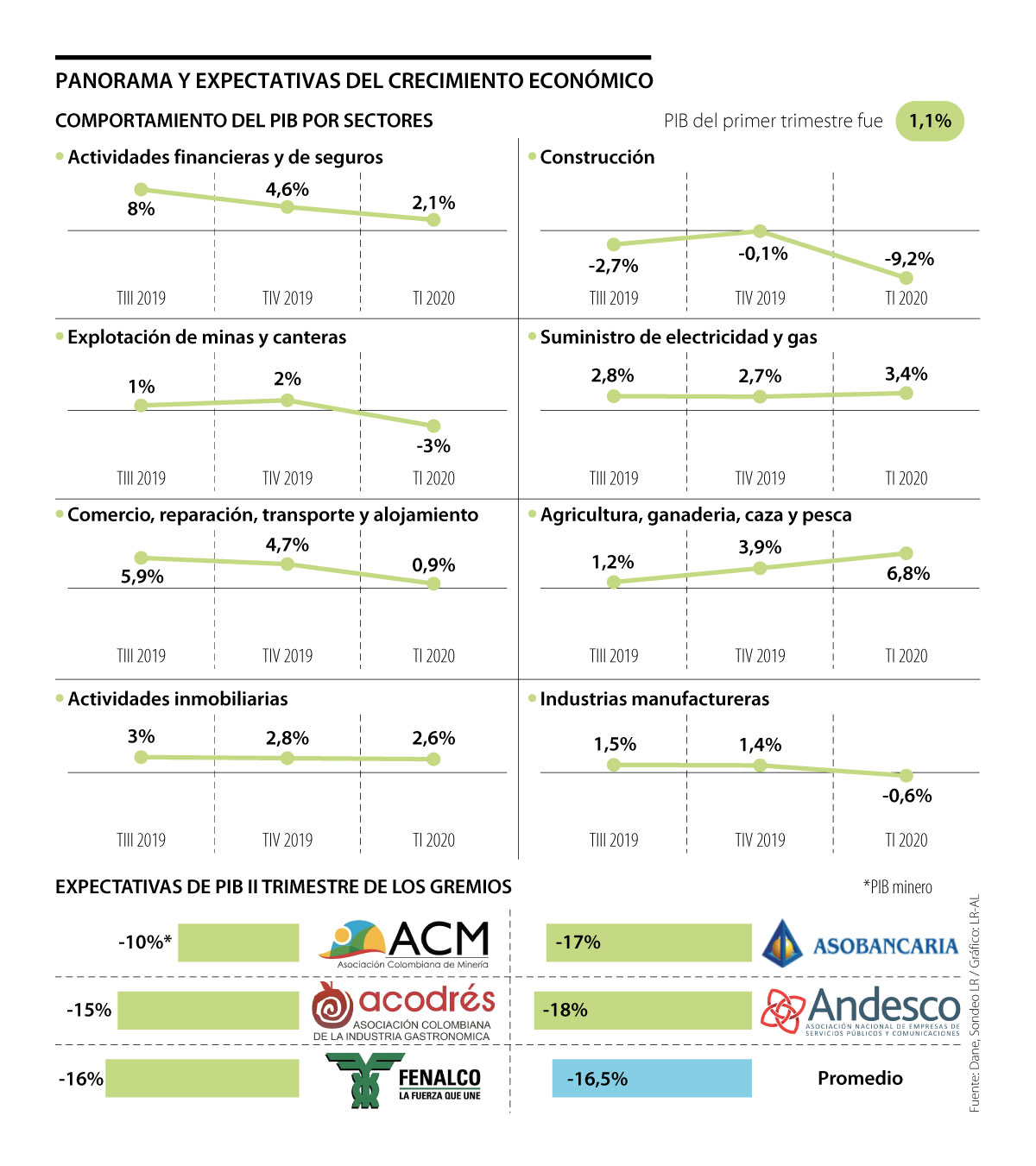 Aunque fueron consultados, muchos de los gremios prefirieron no dar una cifra, y de los que lo hicieron, unos tuvieron una postura conservadora y otros una más pesimista, pero todos coinciden en que será el reto más grande para el futuro del país. Por ejemplo, Asobancaria y Andesco prevén una caída de 17% y 18%, respectivamente, y aseguran que esto dejará secuelas para el resto de año y proyecciones futuras.