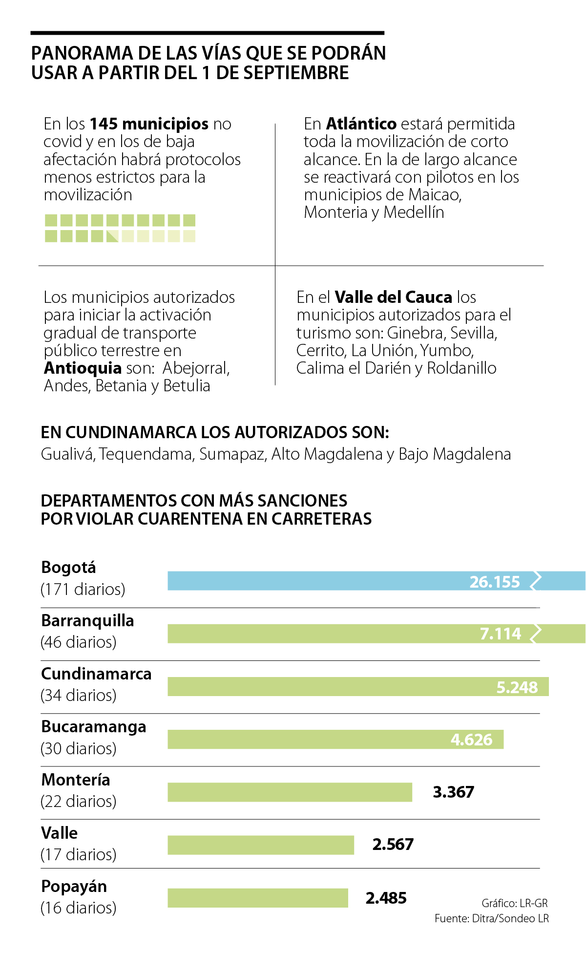 Por otro lado, en el Atlántico los viajes serán un poco más laxos, pues ya se confirmó que, en el corto alcance, es decir, intermunicipalmente, se podrán hacer viajes solo teniendo en cuenta los elementos de protección que se deben portar, pero con la oportunidad de entrar en cualquiera de los municipios del departamento, manteniendo el aforo que los alcaldes permitan.