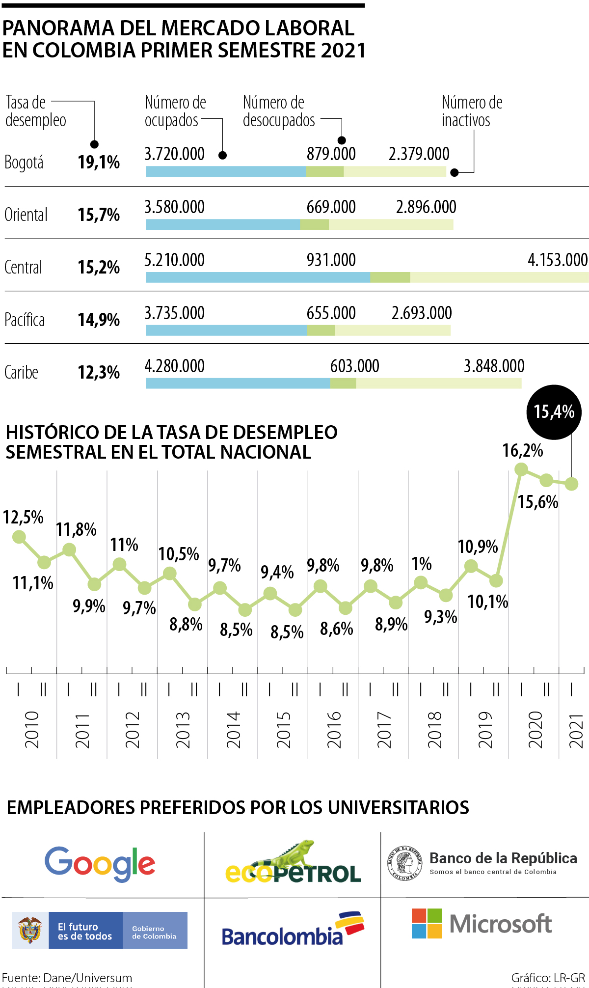 Marcas como Ecopetrol, Google, Banco de la República, entre otras, son las preferidas por los universitarios como empleadores