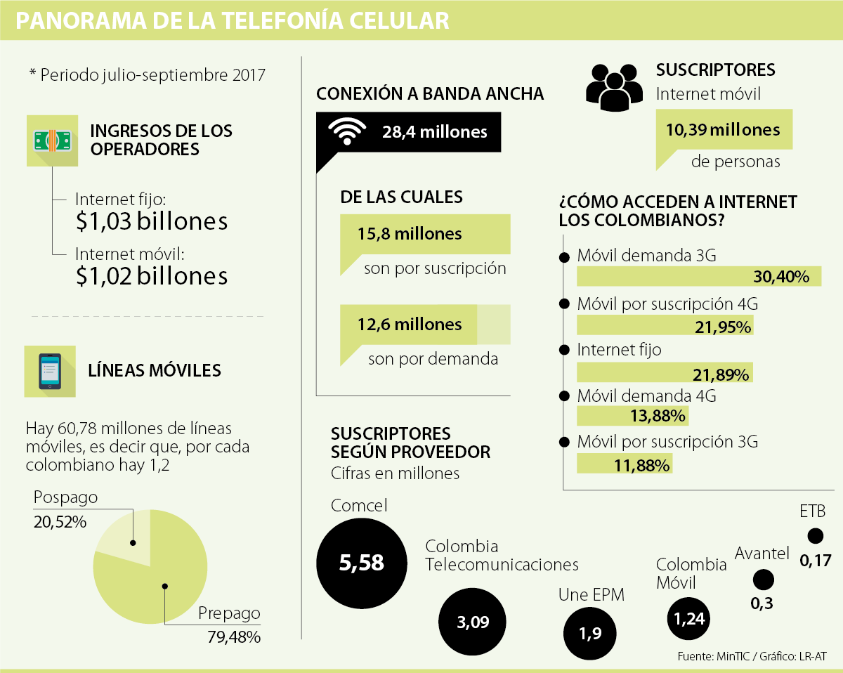 La inversión, por ejemplo, se redujo de $4,55 billones en 2013, hasta $3,34 billones en 2016, a lo que se suman cuatro años de retroceso en los ingresos de las compañías, según Asomóvil, gremio que representa 94,1% del mercado.