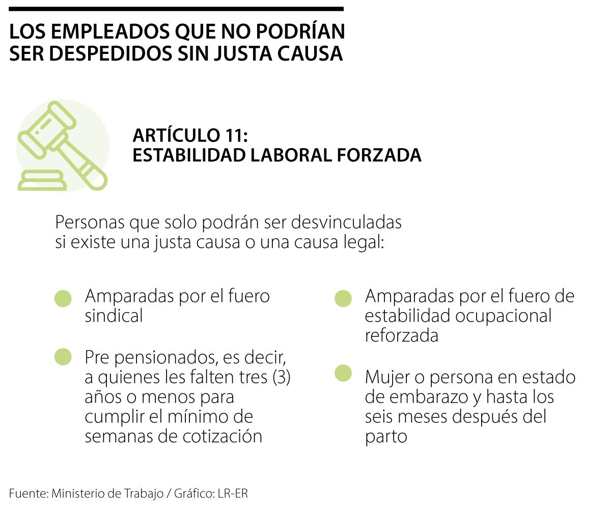 En el artículo 11 del proyecto de reforma laboral, en el que se habla de estabilidad laboral reforzada, se establecen los grupos de personas que solo podrían ser desvinculadas si existe una justa causa o una causa legal.