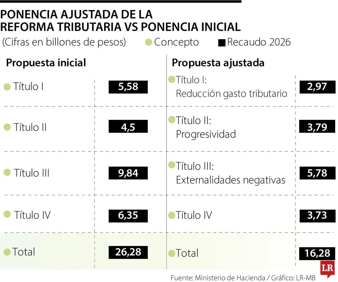El proyecto de la reforma tributaria, inicialmente de $26,3 billones, sufrió un recorte de $10 billones durante la discusión del PGN 2026. Este cambio se da por el anuncio de unos ítems que fueron exentos, mientras que otros se gravarían con los ajustes que hizo el Gobierno Nacional, a través del Ministerio de Hacienda.