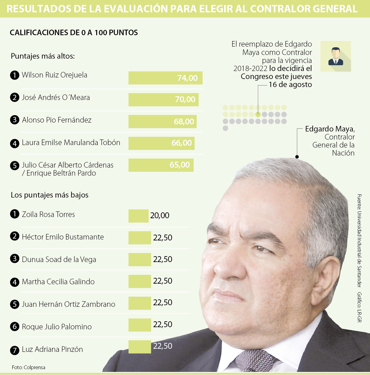 A cuatro días de que el Congreso defina quién será el sucesor de Edgardo Maya Villazón como Contralor General de la República, la Universidad Industrial de Santander publicó los resultados de la evaluación a los 60 aspirantes que siguen en competencia por este cargo para la vigencia 2018-2022.