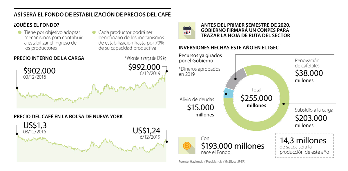 “Hay que ver cómo de manera creativa somos capaces de aumentar ese Fondo y de crear las herramientas que nos permitan proteger el ingreso (...). Ahora sigue la reglamentación y la firma de contrato. El Fondo iniciará a partir de enero de 2020”, explicó Roberto Vélez, gerente de la Federación Nacional de Cafeteros.