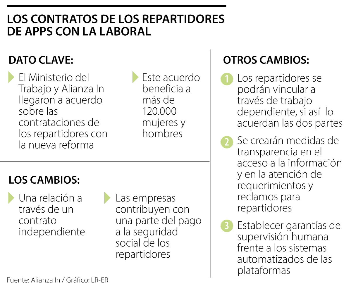 Lo primero a destacar es que el Ministerio de Trabajo y Alianza In, el gremio que agrupa a estas plataformas digitales, llegaron a un acuerdo sobre las contrataciones de los repartidores.
