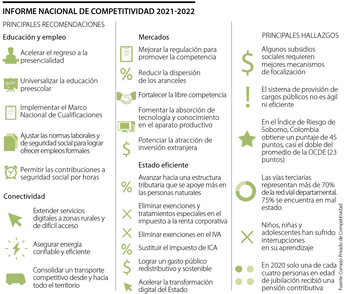 El Consejo Privado de Competitividad (CPC) publicó el Informe Nacional de Competitividad 2021-2022 en el que traza una hoja de ruta a corto plazo que le permita al país avanzar en la construcción de una sociedad más equitativa, a partir del diseño de mejores políticas públicas.