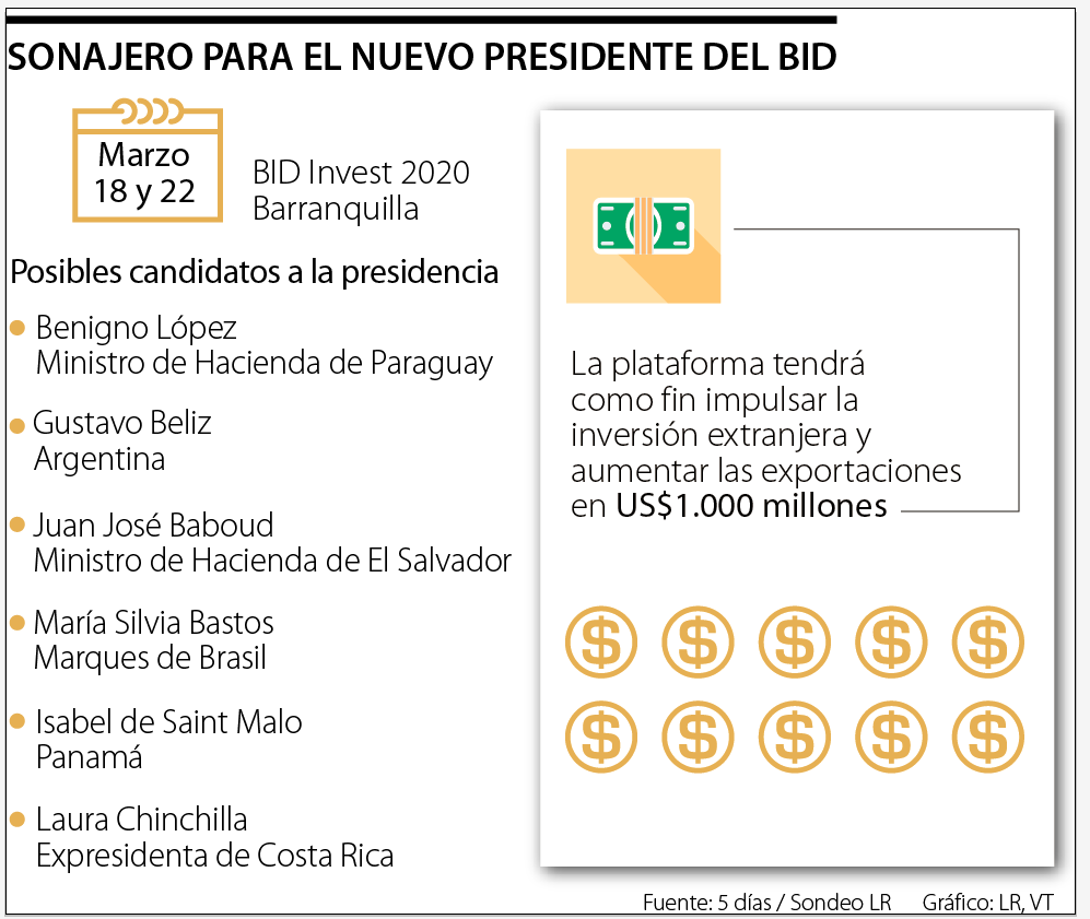 En la próxima Asamblea del Banco Interamericano de Desarrollo (BID), que se llevará a cabo en Barranquilla el 18 y 22 de marzo, se espera que se den a conocer los nombres de los candidatos a suceder a Luis Alberto Moreno, hoy presidente del organismo internacional. Aunque aún Colombia no tiene su postulado, varios países de la región ya destaparon sus cartas con ministros de hacienda y hasta expresidentes.