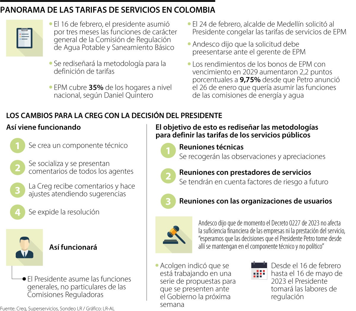 El alcalde de Medellín y presidente de la Junta Directiva de EPM, Daniel Quintero, comentó a LR que recibió retroalimentación del presidente, Gustavo Petro. “Dijo que le gustaba la propuesta pero quería discutirla de forma particular con nosotros. Haremos una mesa para explorar esa y otras alternativas”, comentó. Quintero también mencionó que si la medida fuera aprobada por Presidencia, se aplicaría de forma inmediata e impactaría 13 departamentos. “La medida llegaría hasta el último día de mi gobierno, que es el 31 de diciembre de este año, luego sería una discusión entre el nuevo alcalde o alcaldesa con el Presidente".