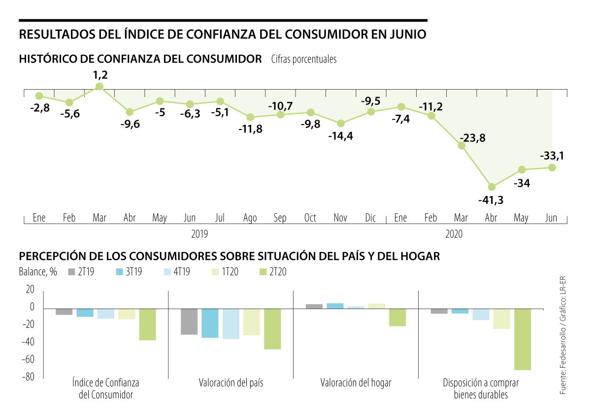 En el sexto mes del año terminó en -33,1%, luego de recuperar 0,9 puntos porcentuales (pps). Pero detrás de esta leve recuperación, el centro de pensamiento explicó que hay varios factores, y uno de los que más predomina en que el consumo mejore en medio de la pandemia, es que los estratos bajos y medios presentaron avances en su disposición de compra en ese mes.
