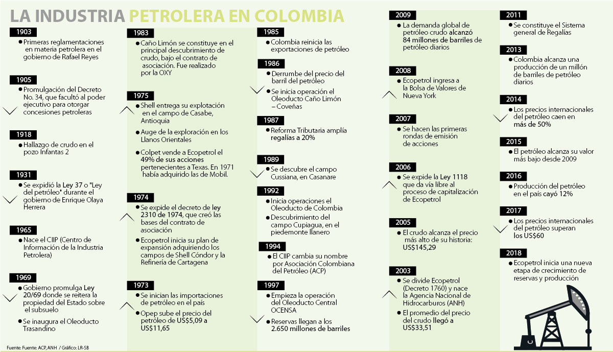 Es importante mencionar que antes de los hallazgos en este campo, en 1903, en el gobierno de Rafael Reyes, se empezaron a elaborar las primeras reglamentaciones petroleras.