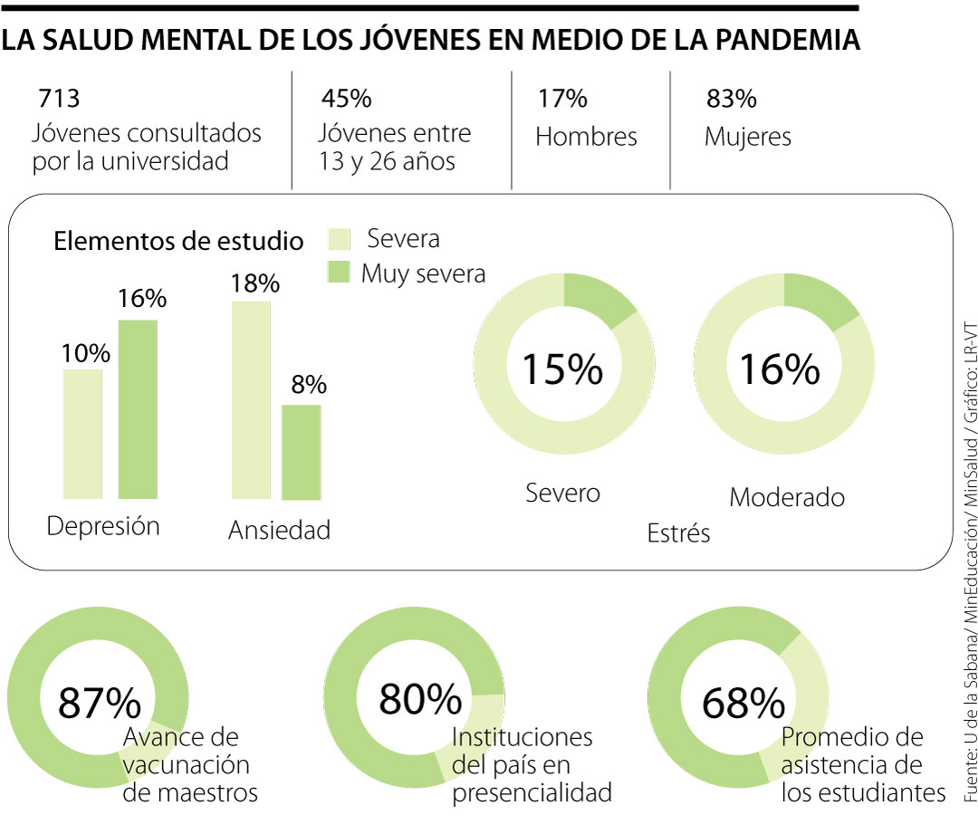 Un estudio llevado a cabo por la Universidad de la Sabana, analizó los impactos causados por medidas como el aislamiento por el covid-19 en la salud mental de los más jóvenes del país; la investigación tuvo como población de análisis a los niños y jóvenes entre 13 y 26 años.