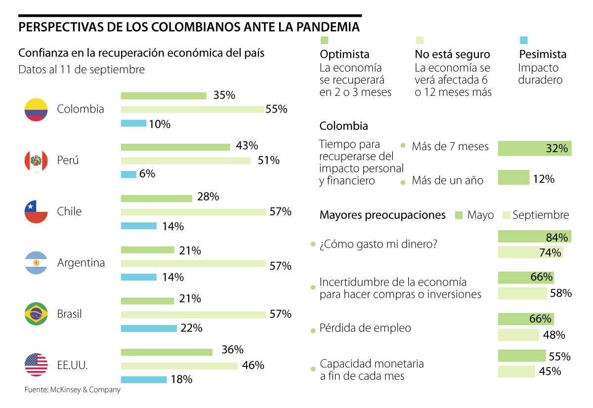 Sin duda, la pandemia y la crisis económica generó el cambió pensamiento y de la conducta económica de millones de colombianos. Según la más reciente encuesta de McKinsey & Company sobre las perspectivas del consumidor, Colombia es uno de los países con mayor pesimismo en cuanto a la recuperación de la economía, debido a la afectación que la emergencia generó en los bolsillos.