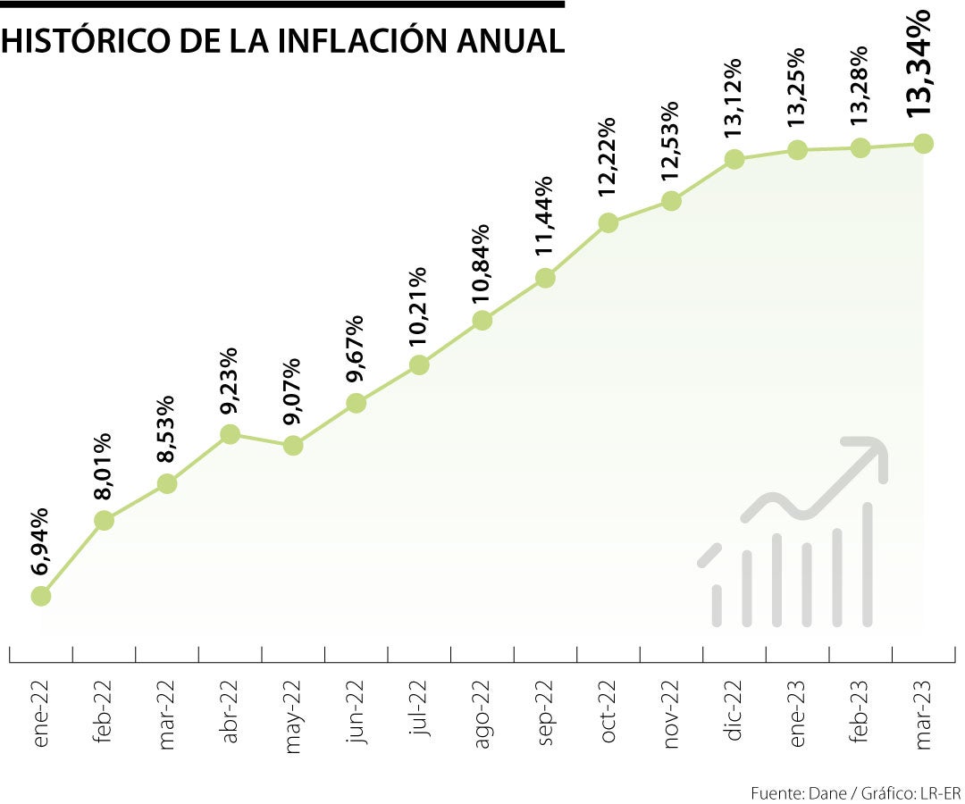 Contrario a lo que esperaba el mercado, la inflación siguió subiendo en marzo y alcanzó un nuevo máximo de 13,34% anual. Mientras tanto, la variación mensual fue de 1,05% y la año corrido fue de 4,56%.