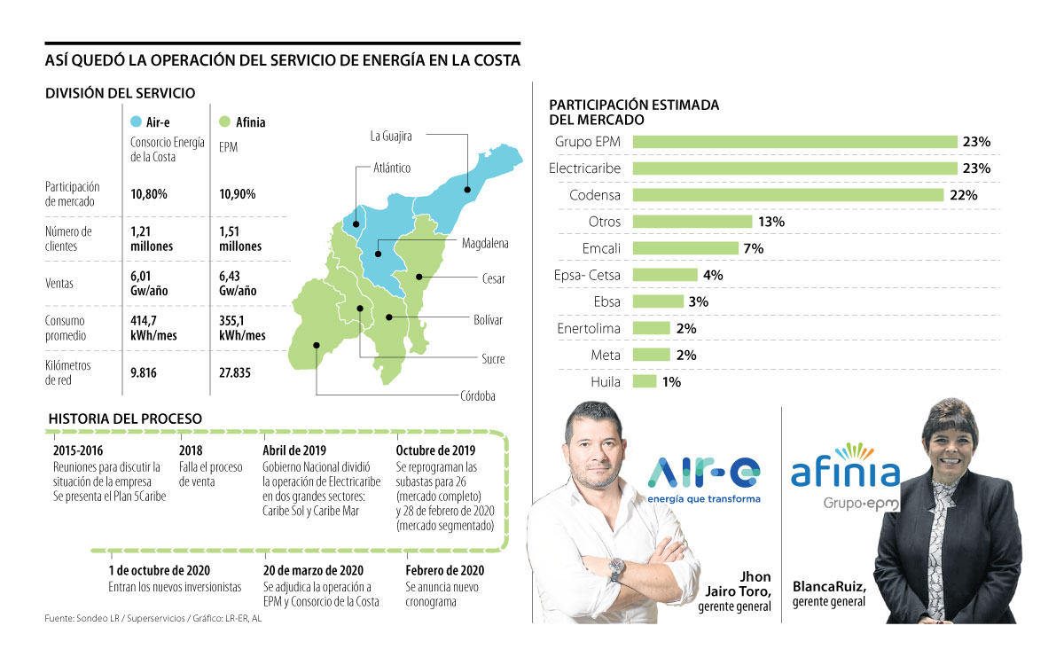 “Hoy podemos decirle a la Costa colombiana que empieza la nueva historia del servicio de energía”. Estas fueron algunas de las palabras que el presidente de la República, Iván Duque, dio al entregar las llaves de la operación del servicio público de energía a las empresas ganadoras de la subasta: Afinia y Air-e, con lo que se puso fin a la trama de Electricaribe.